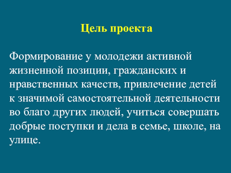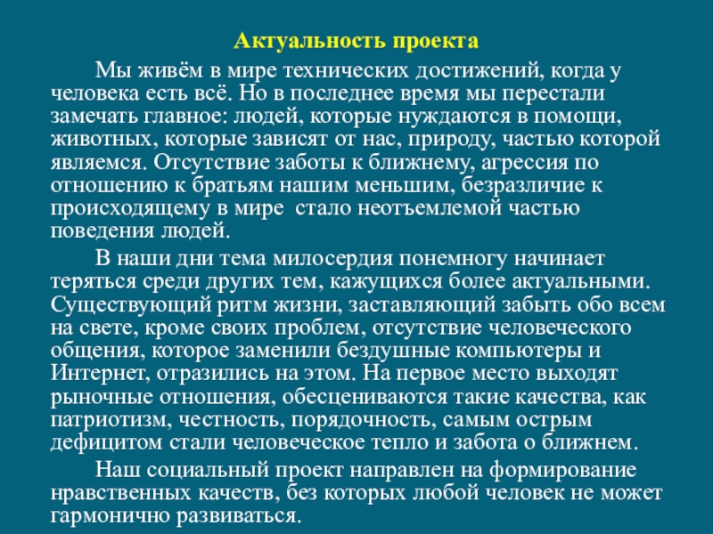 Наш социальный проект направлен на формирование нравственных качеств, без которых любой человек не может гармонично развиваться.