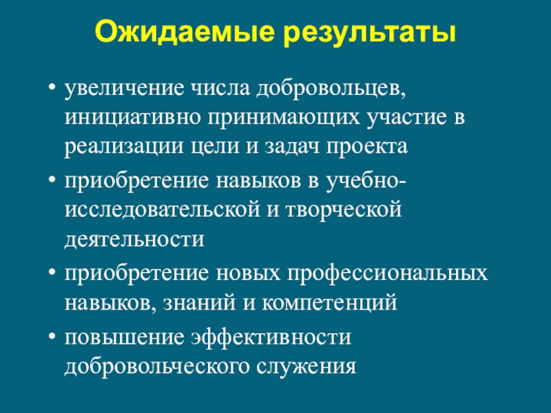 увеличение числа добровольцев, инициативно принимающих участие в реализации цели и