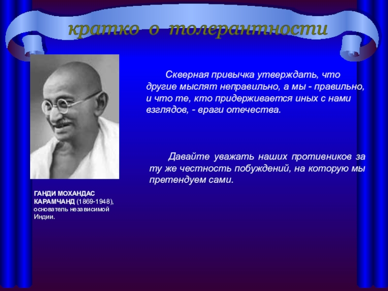 Давайте уважать наших противников за ту же честность побуждений, на которую мы претендуем сами.