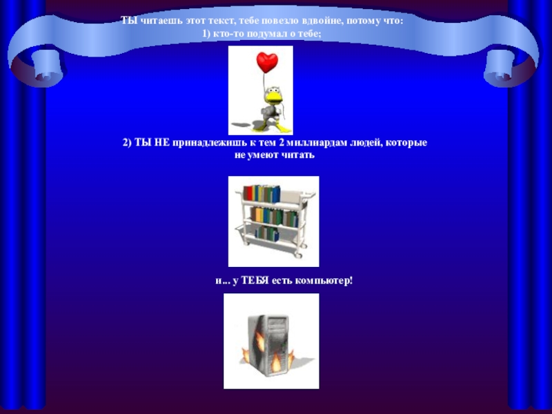 ТЫ читаешь этот текст, тебе повезло вдвойне, потому что: