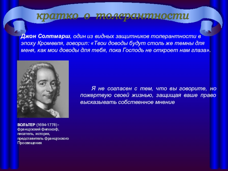Я не согласен с тем, что вы говорите, но пожертвую своей жизнью, защищая ваше право высказывать собственное мнение