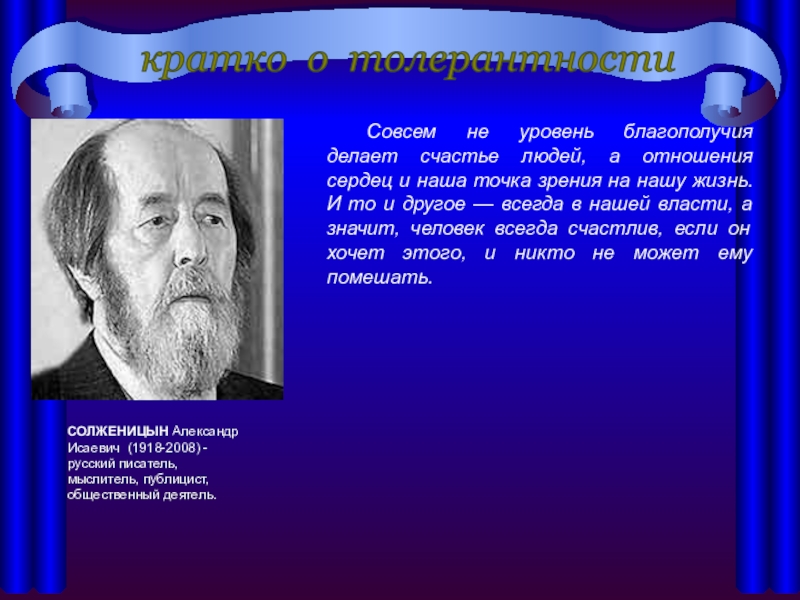СОЛЖЕНИЦЫН Александр Исаевич (1918-2008) - русский писатель, мыслитель, публицист, общественный деятель.