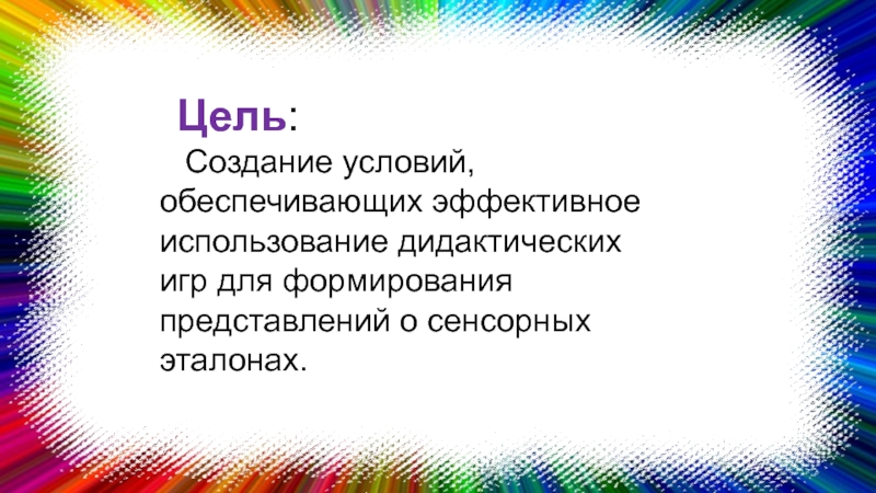 Цель: Создание условий, обеспечивающих эффективное использование дидактических игр для формирования представлений о сенсорных эталонах.