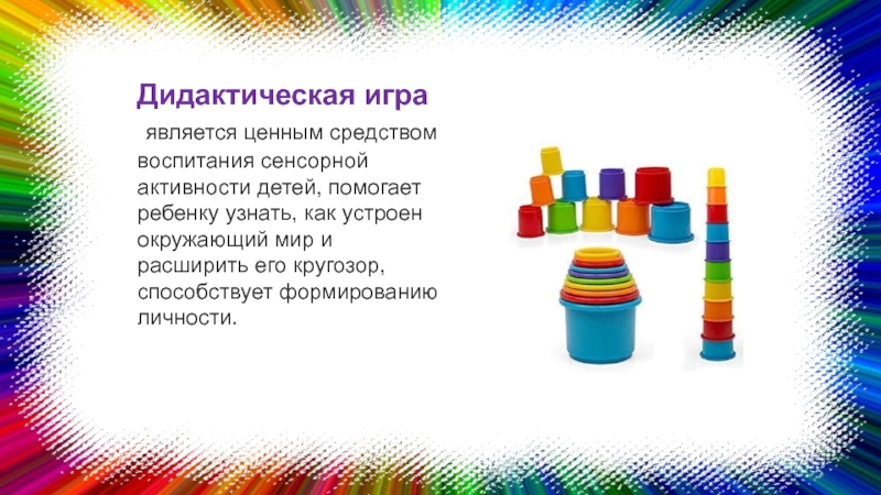 Дидактическая игра является ценным средством воспитания сенсорной активности детей, помогает ребенку узнать, как устроен окружающий мир и