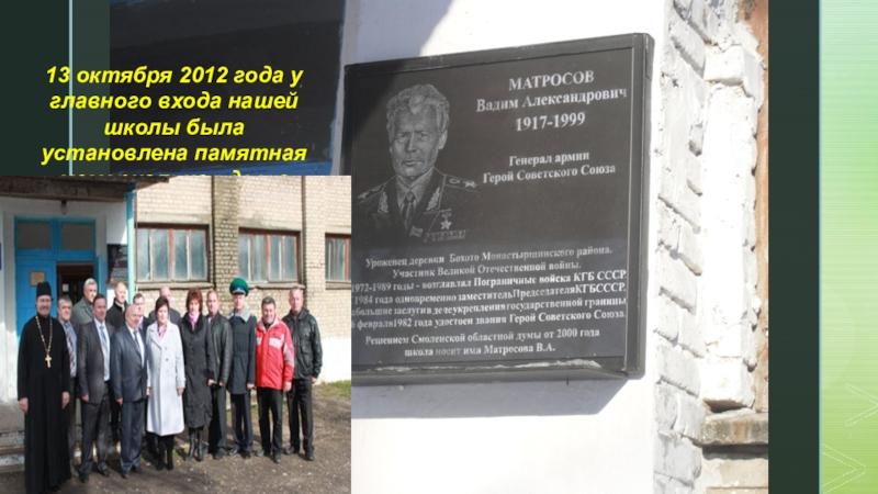 Слайд 1713 октября 2012 года у главного входа нашей школы была установлена