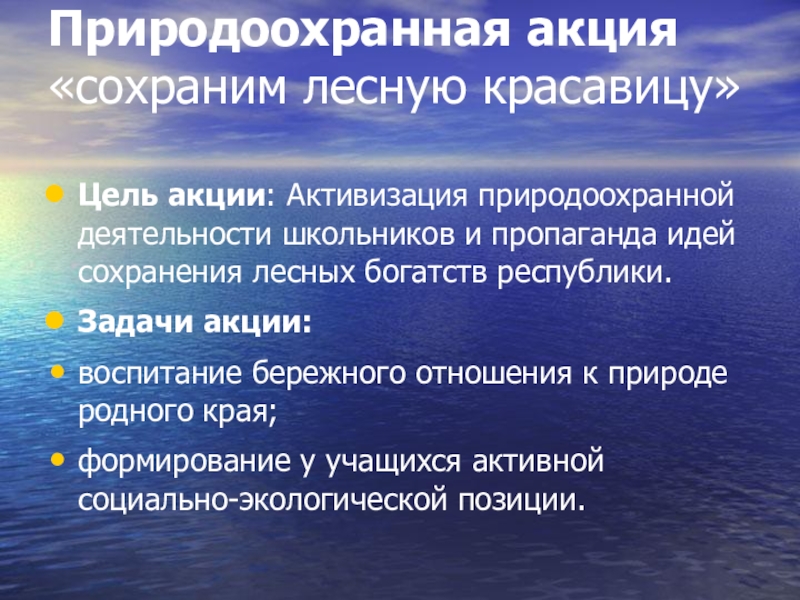 Цель акции: Активизация природоохранной деятельности школьников и пропаганда