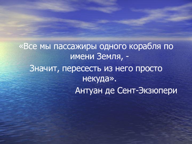 Слайд 2«Все мы пассажиры одного корабля по имени Земля, -