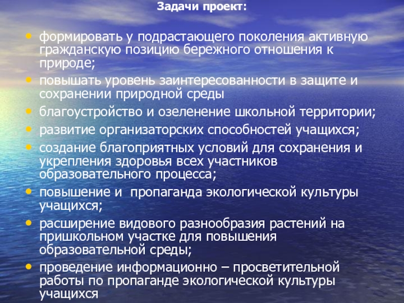 формировать у подрастающего поколения активную гражданскую позицию бережного отношения к