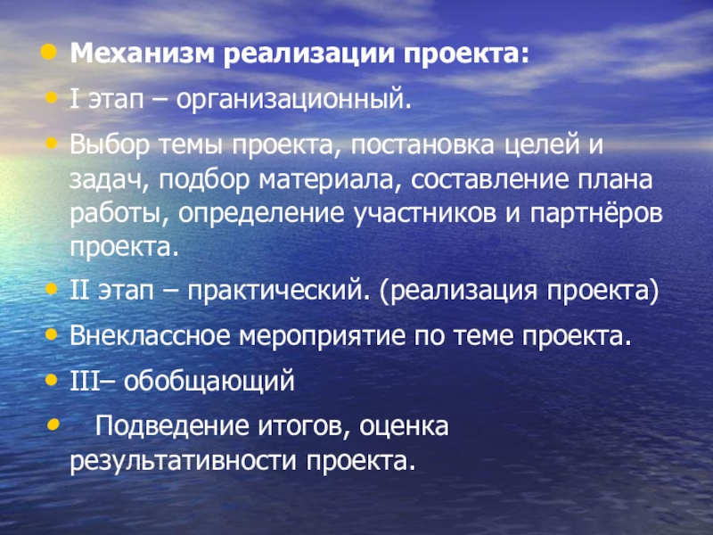 задач, подбор материала, составление плана работы, определение участников и партнёров проекта.