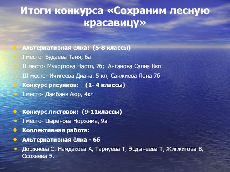 Слайд 20Итоги конкурса «Сохраним лесную красавицу»