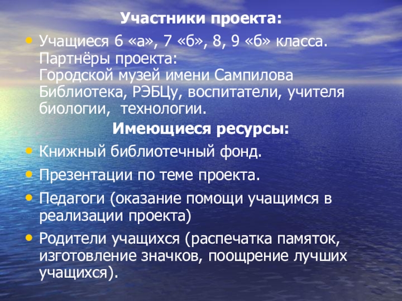 Библиотека, РЭБЦу, воспитатели, учителя биологии, технологии.