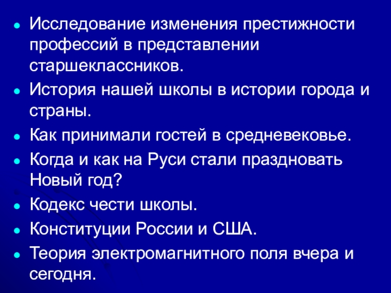 Слайд 28Исследование изменения престижности профессий в представлении старшеклассников.