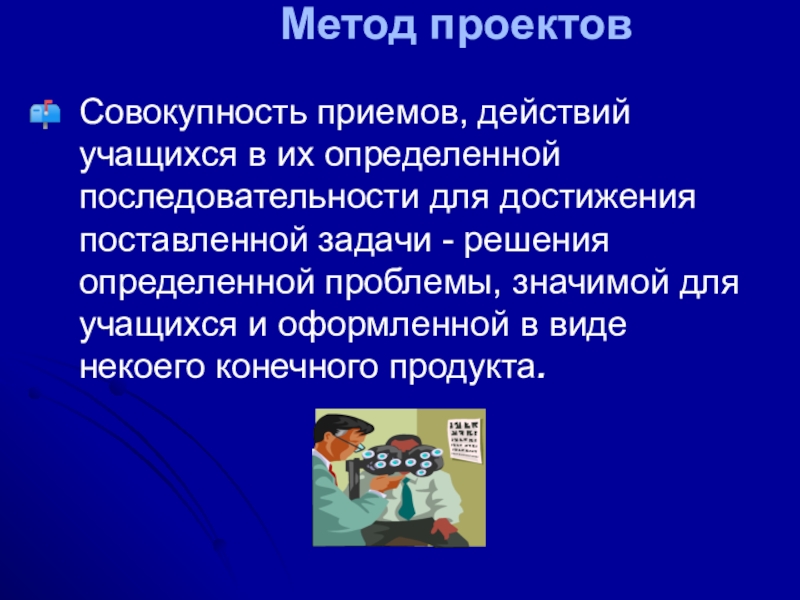 определенной последовательности для достижения поставленной задачи - решения определенной проблемы, значимой для учащихся и оформленной в виде некоего конечного продукта.