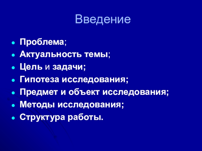 Включает обоснование актуальности, обозначение задач исследования, выдвижение гипотезы и