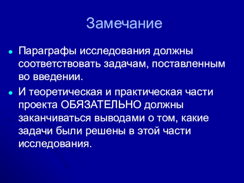 Параграфы исследования должны соответствовать задачам, поставленным во введении.