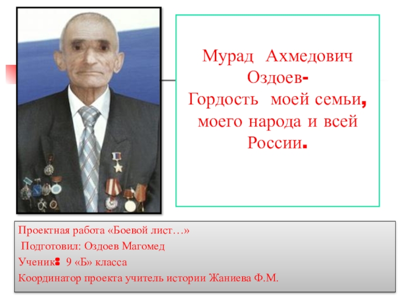 Мурад Ахмедович Оздоев- Гордость моей семьи, моего народа и всей России.
