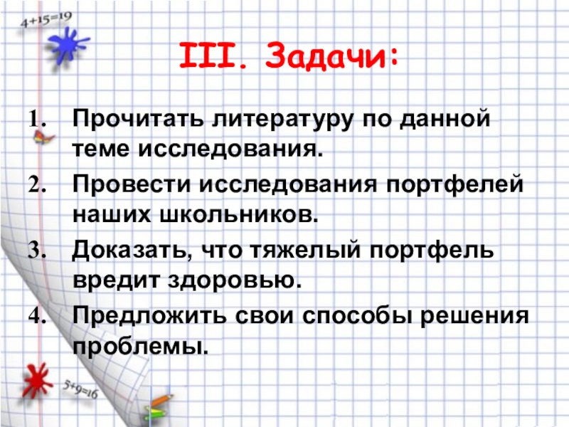 III. Задачи: