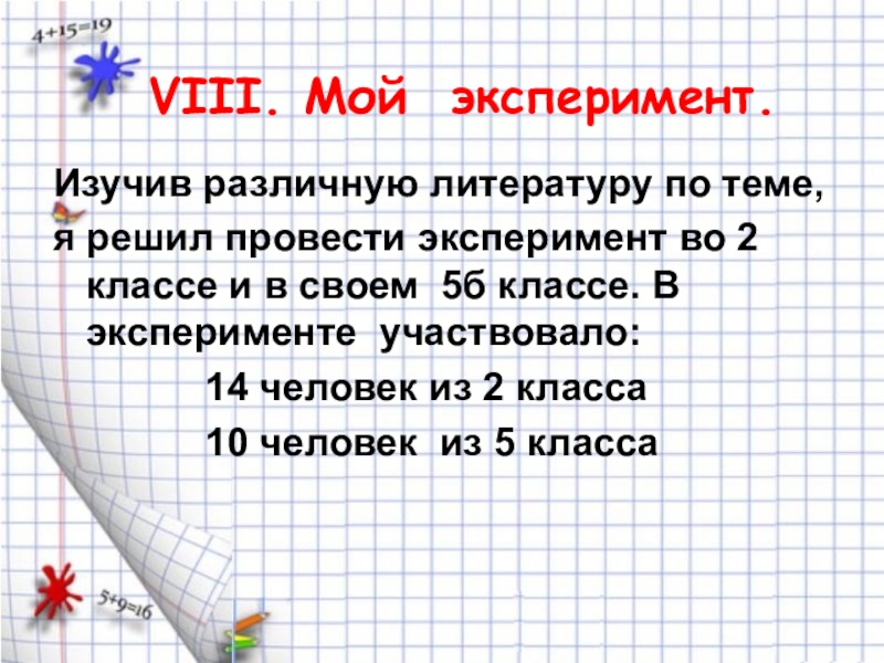 VIII. Мой эксперимент.