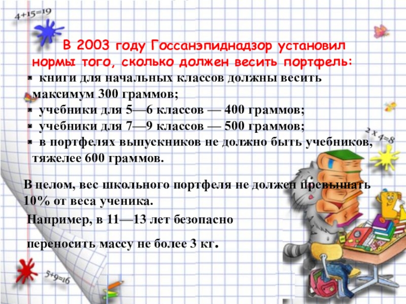 В 2003 году Госсанэпиднадзор установил нормы того, сколько должен весить портфель: