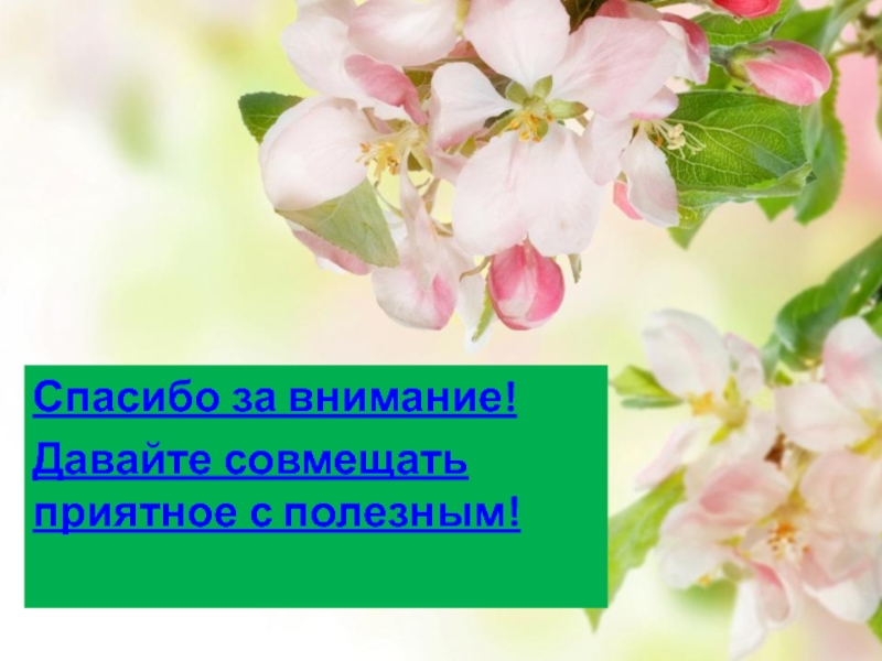 Спасибо за внимание!Давайте совмещать приятное с полезным!