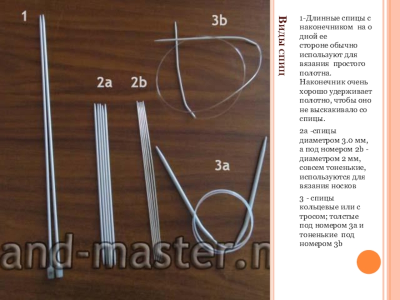 2а -спицы диаметром 3.0 мм, а под номером 2b - диаметром 2 мм, совсем тоненькие, используются для вязания носков