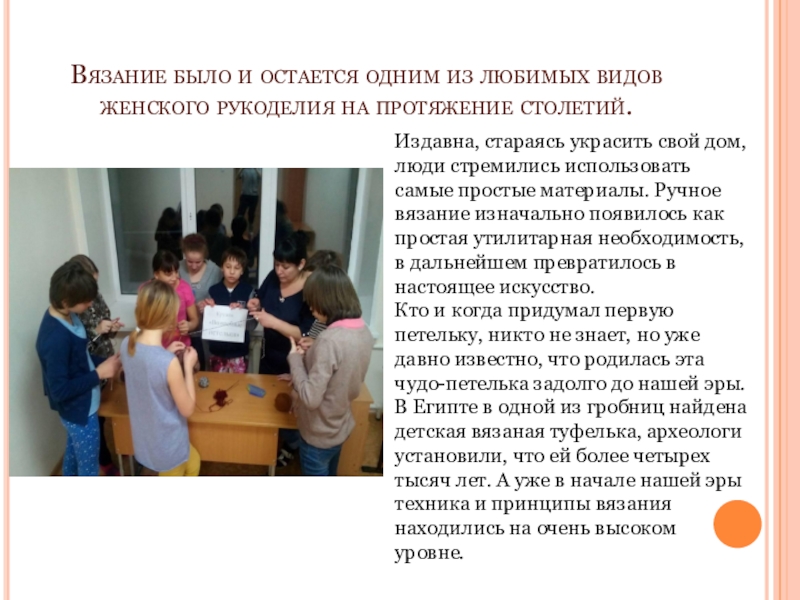 Слайд 2Вязание было и остается одним из любимых видов женского рукоделия на