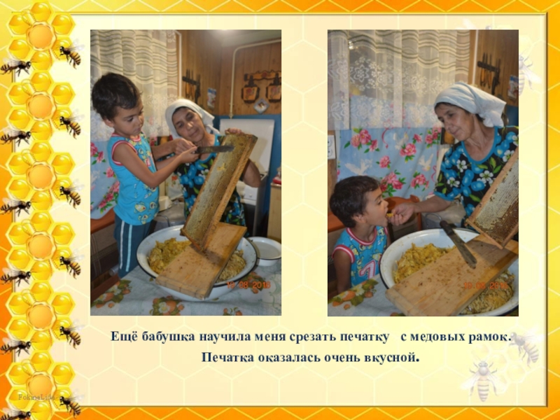 Слайд 19Ещё бабушка научила меня срезать печатку с медовых рамок.