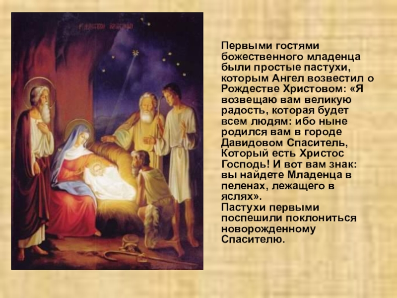 В вертепе (или, по-русски, пещере) и появился на свет Младенец Иисус, которого Матерь Божия, спеленав, положила на сено в ясли для скота.