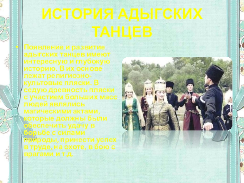 Слайд 9ИСТОРИЯ АДЫГСКИХ ТАНЦЕВ
