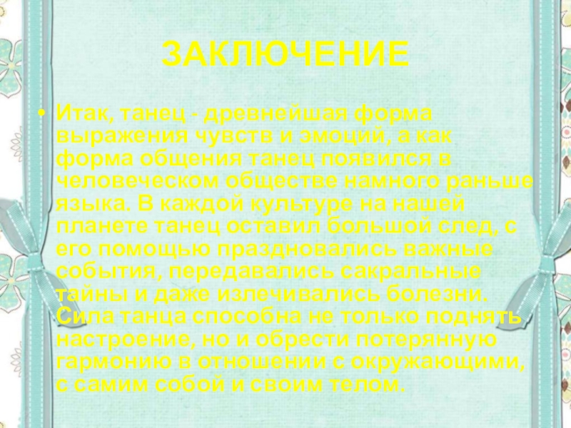 Итак, танец - древнейшая форма выражения чувств и эмоций, а как