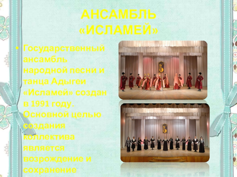 Государственный ансамбль народной песни и танца Адыгеи «Исламей» создан в 1991