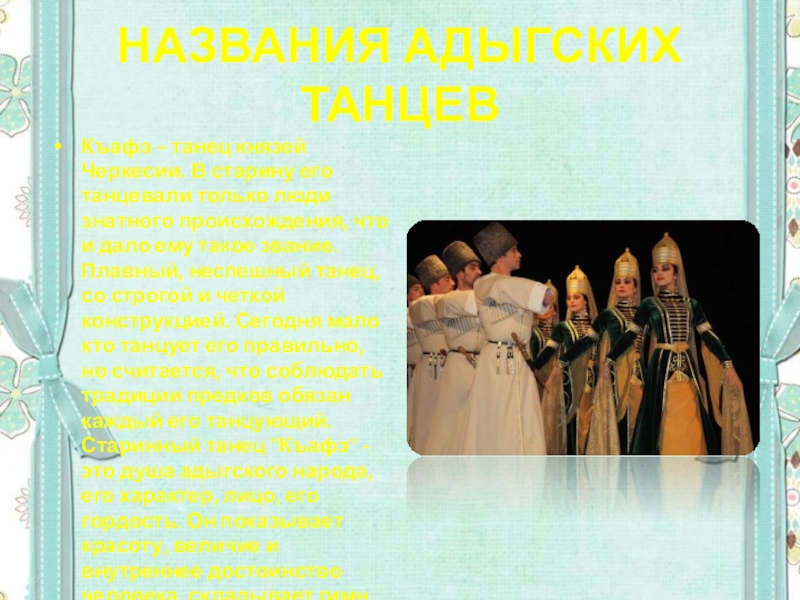 Слайд 10НАЗВАНИЯ АДЫГСКИХ ТАНЦЕВ