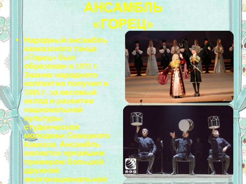 Народный ансамбль кавказского танца «Горец» был образован в 1971 г. Звание