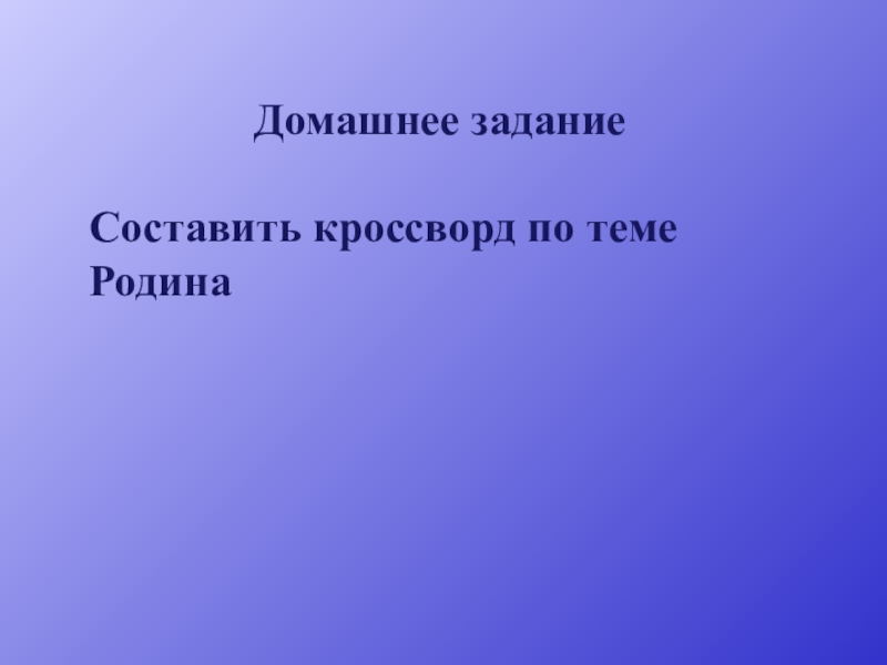 Домашнее заданиеСоставить кроссворд по теме Родина