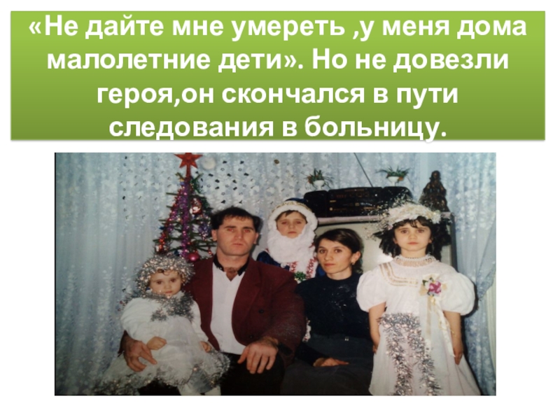Слайд 10«Не дайте мне умереть ,у меня дома малолетние дети». Но не