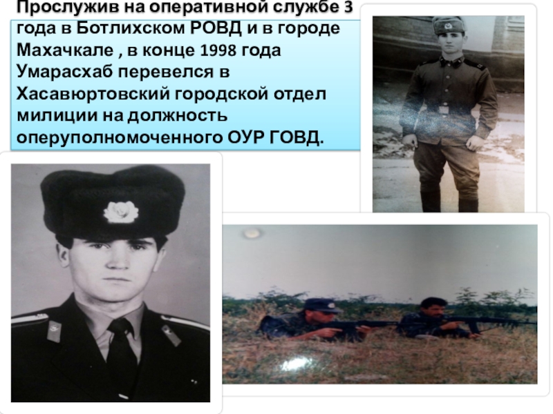 Слайд 9Прослужив на оперативной службе 3 года в Ботлихском РОВД и в