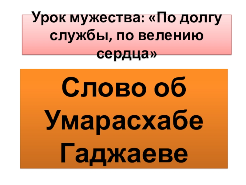 Урок мужества: «По долгу службы, по велению сердца»Слово об Умарасхабе Гаджаеве