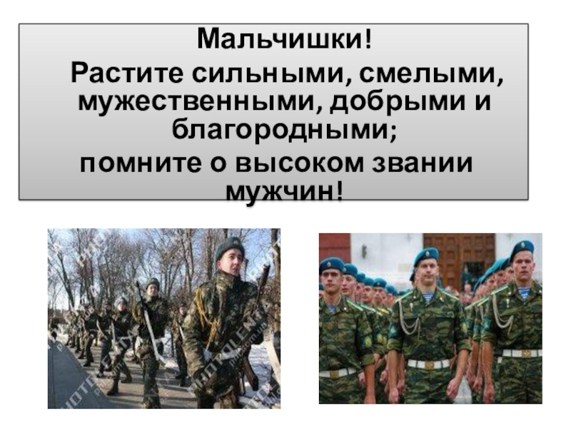 Мальчишки!  Растите сильными, смелыми, мужественными, добрыми и благородными; помните о высоком звании мужчин!