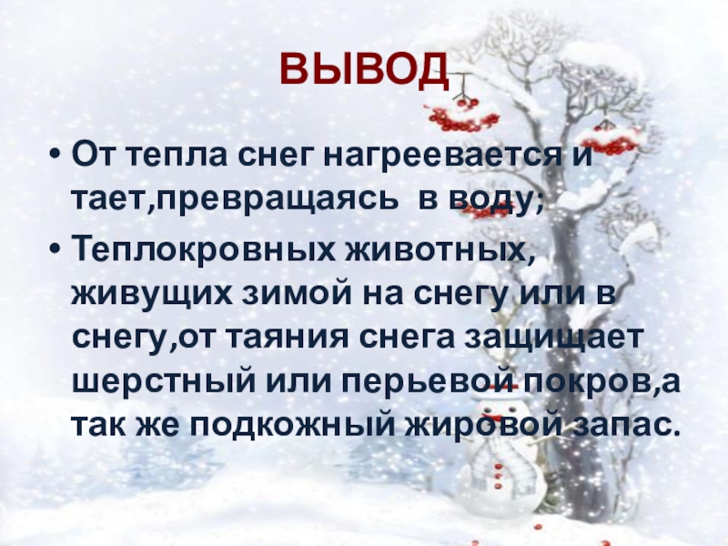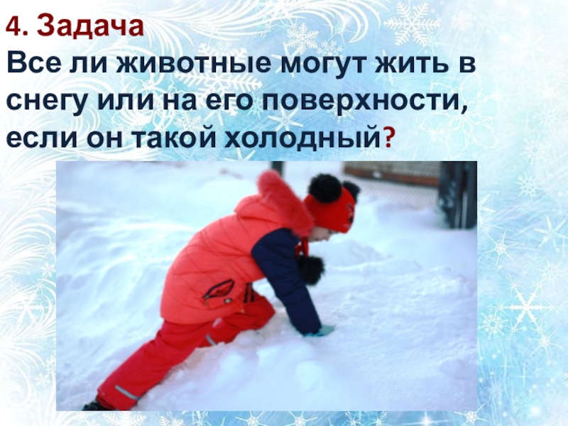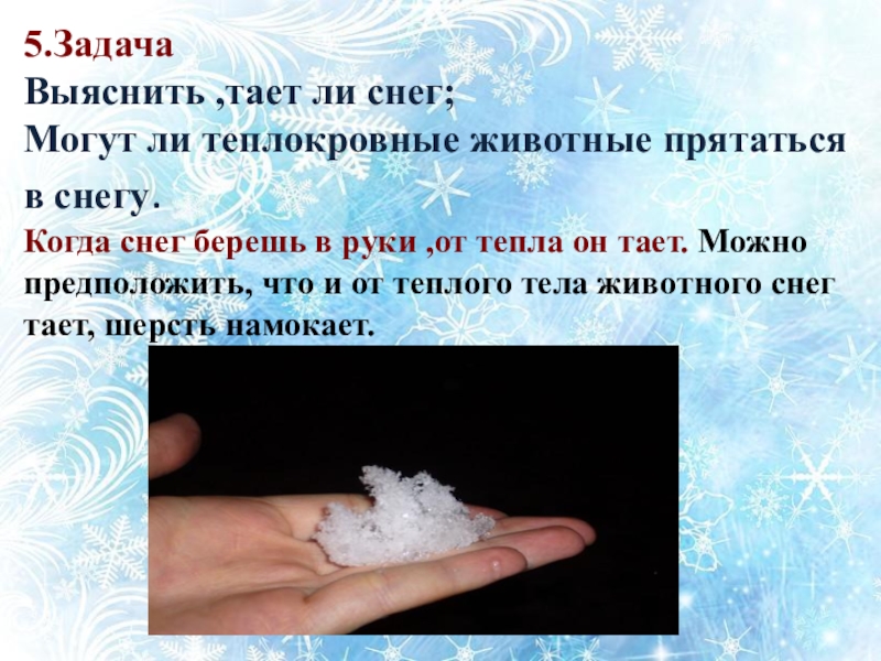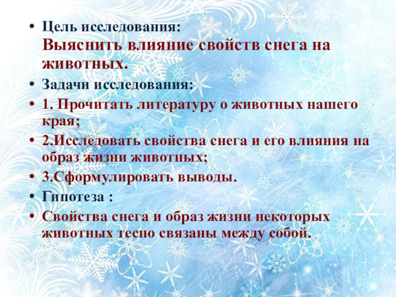 2.Исследовать свойства снега и его влияния на образ жизни животных;