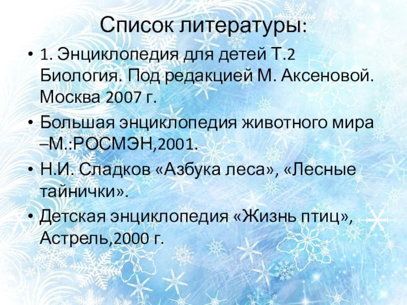 1. Энциклопедия для детей Т.2 Биология. Под редакцией М. Аксеновой.