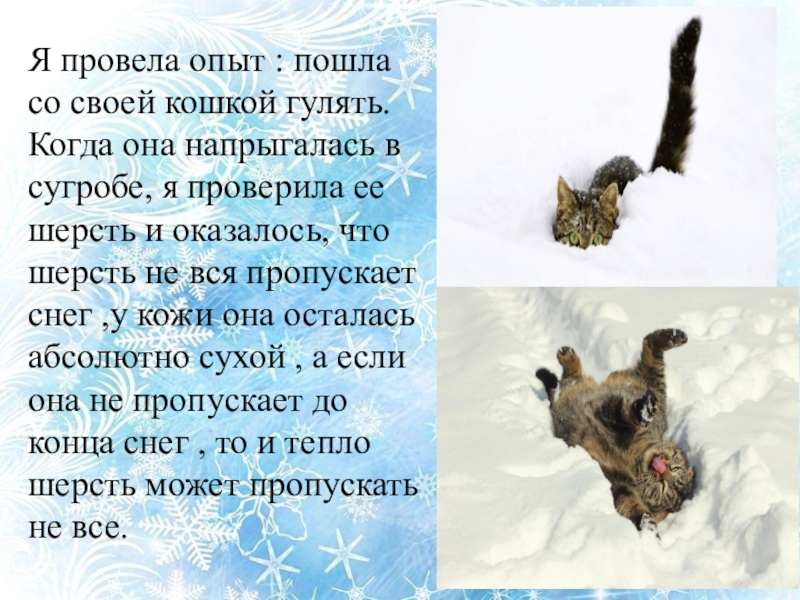 Слайд 19Я провела опыт : пошла со своей кошкой гулять. Когда она