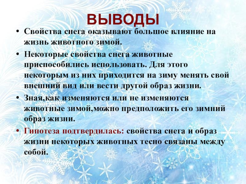 Гипотеза подтвердилась: свойства снега и образ жизни некоторых животных тесно связаны между собой.