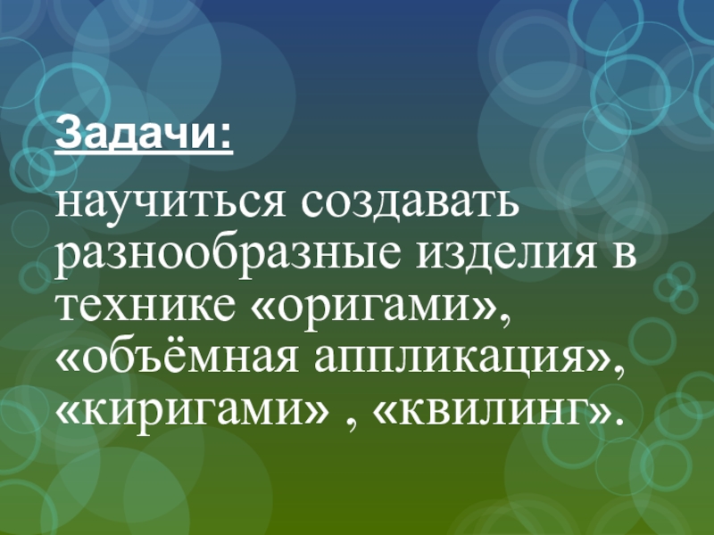 научиться создавать разнообразные изделия в технике «оригами», «объёмная аппликация», «киригами»