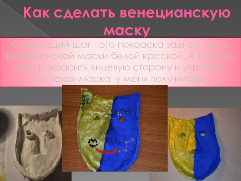 маски белой краской. А дальше надо покрасить лицевую сторону и украсить.