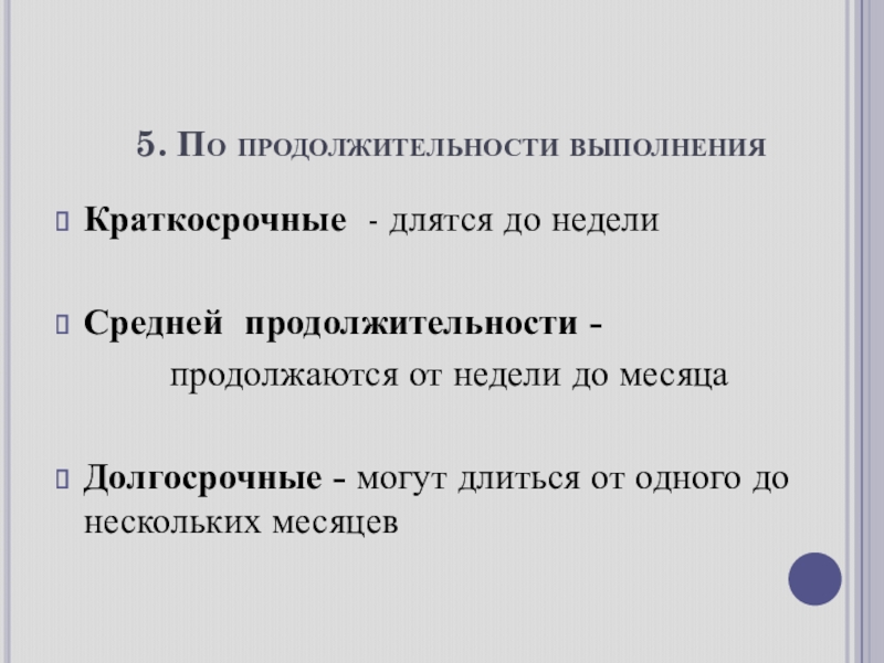 Долгосрочные - могут длиться от одного до нескольких месяцев
