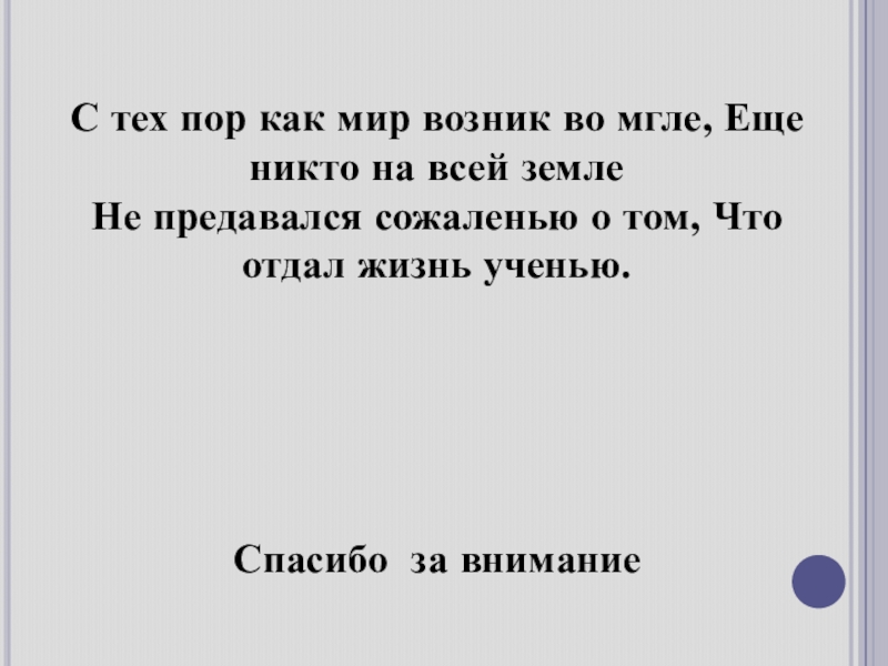Не предавался сожаленью о том, Что отдал жизнь ученью.