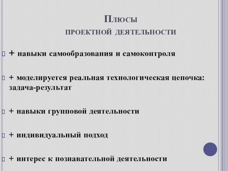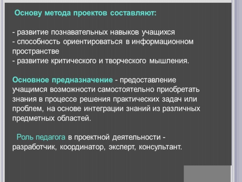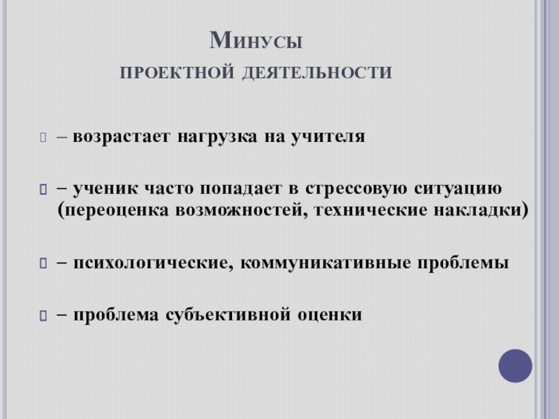- чрезмерное увлечение «методом проектов» шло в ущерб другим методам обучения;