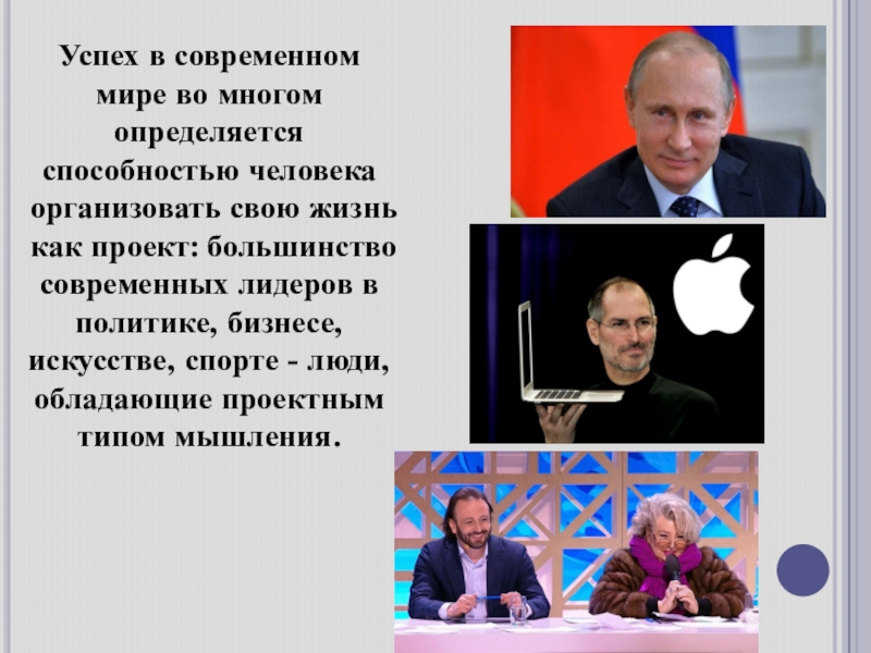 жизнь как проект: большинство современных лидеров в политике, бизнесе, искусстве, спорте - люди, обладающие проектным типом мышления.