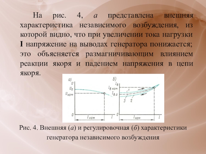 На рис. 4, а представлена внешняя характеристика независимого возбуждения, из которой