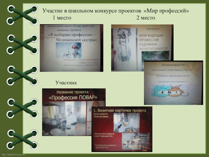 Слайд 22Участие в школьном конкурсе проектов «Мир профессий»